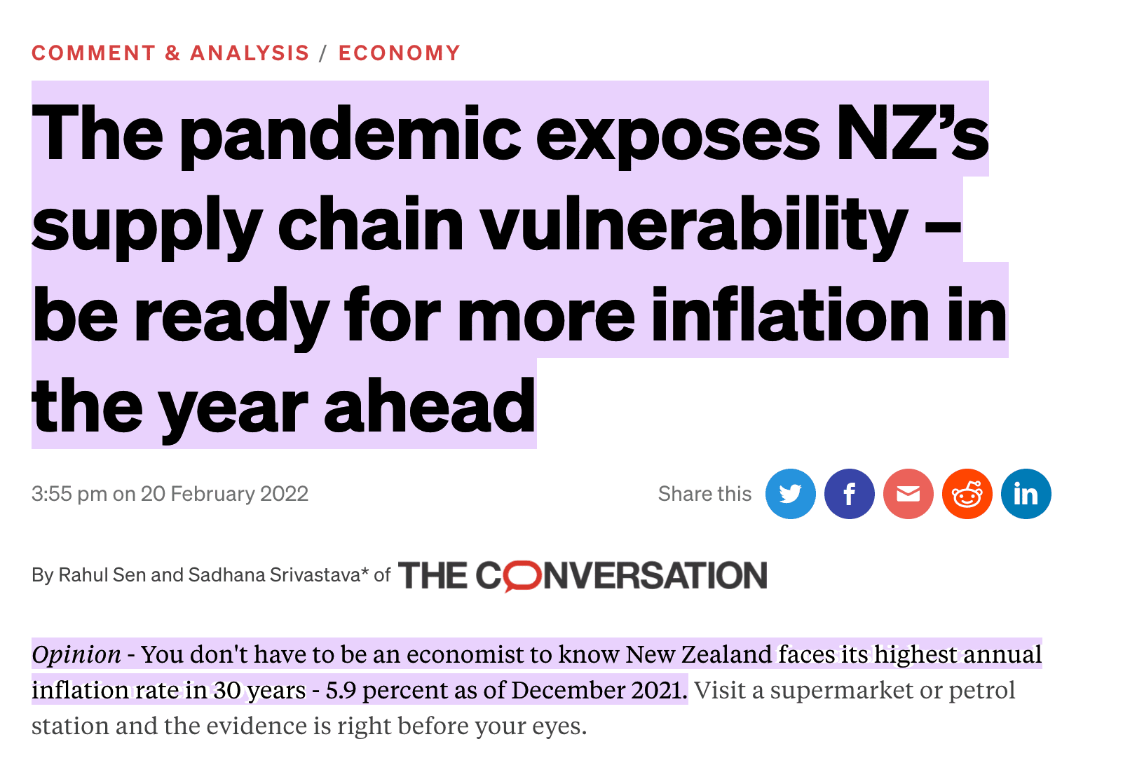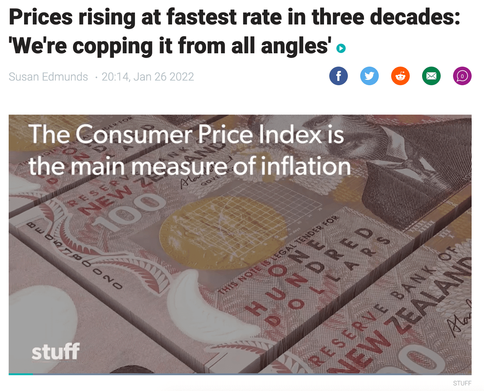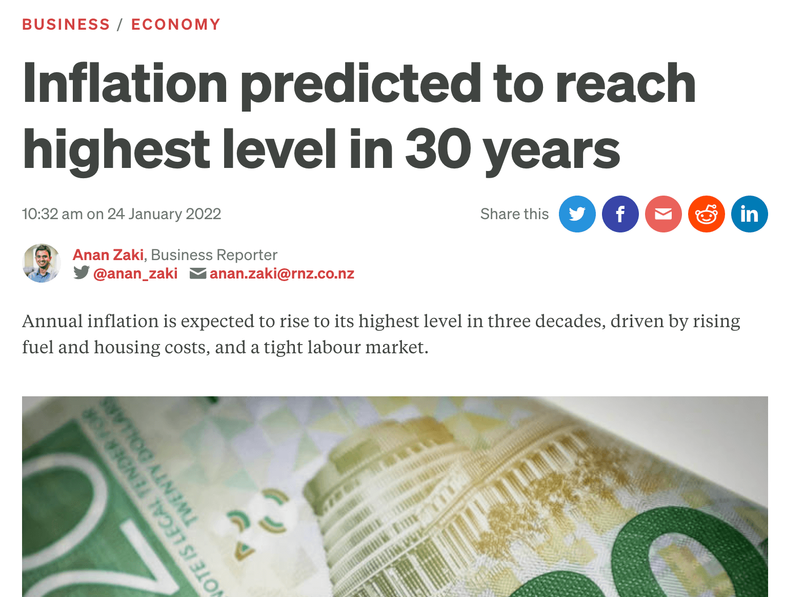 July 2022 update: The NZ Herald interviewed me about my thoughts on inflation. That article can be found here.